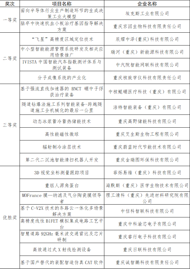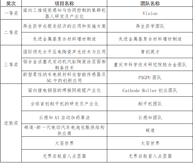 第九届“创客中国”重庆市中小企业创新创业大赛决赛获奖名单