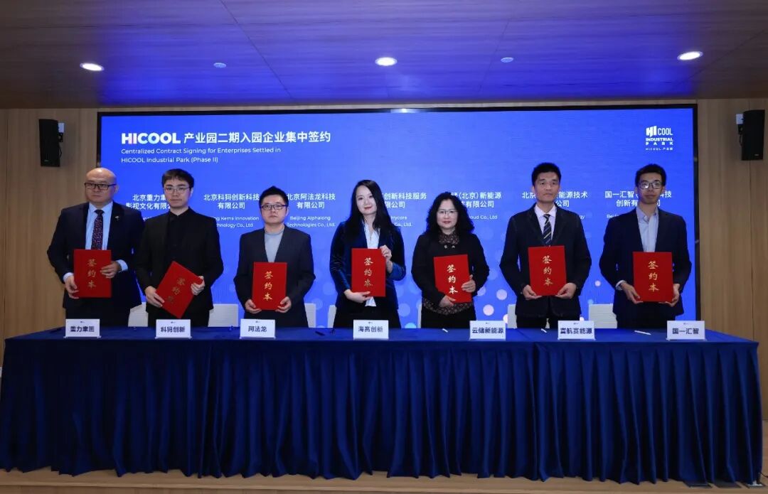 企业入驻签约环节中,HICOOL与云储(北京)新能源科技有限公司、北京阿法龙科技有限公司、北京富航赛能源技术有限公司、北京科犸创新科技有限公司、国一汇智(北京)科技创新有限公司、北京重力聿画影视文化有限公司六家入驻HICOOL产业园二期的企业代表举行签约仪式。
