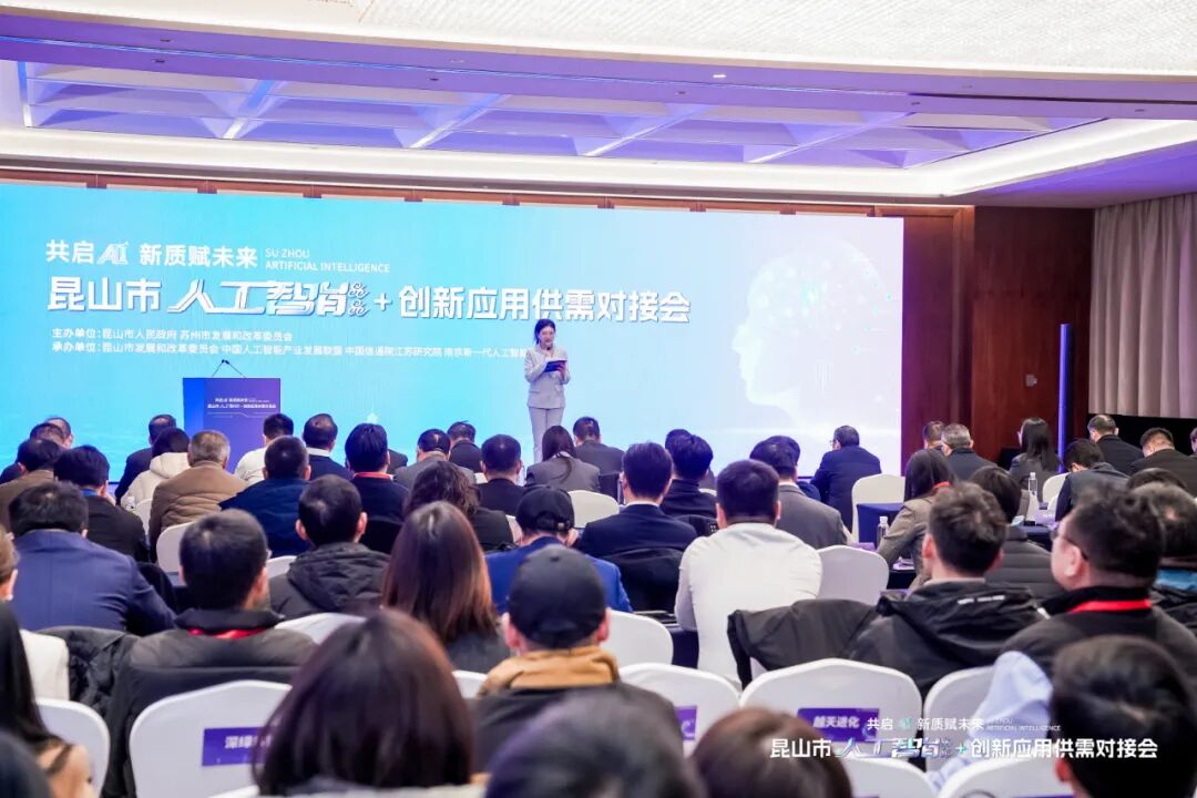 当天下午,昆山市“人工智能+”创新应用供需对接会在苏州召开。此次对接会是2025年苏州市“人工智能+”创新发展推进大会暨人工智能赋能新型工业化深度行(苏州站)活动的重要组成部分,旨在汇聚智慧、链接资源,推动人工智能应用在昆山落地生根、结出硕果,助力昆山开启人工智能赋能新型工业化的新篇章。