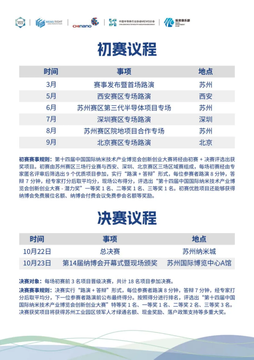 2024年第十四届纳博会创新创业大赛赛程如下,目前已成功举办所有初赛,10月22日苏州总决赛不见不散!