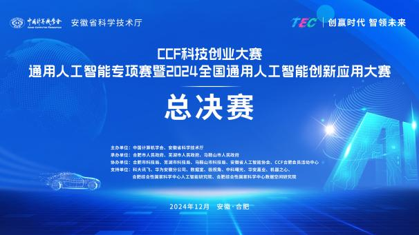 2024年12月4-5日,2024年度CCF科技创业大赛(TEC 2024)通用人工智能专项赛总决赛暨颁奖典礼在合肥顺利举办。现场决出一等奖1名,二等奖2名,三等奖3名。