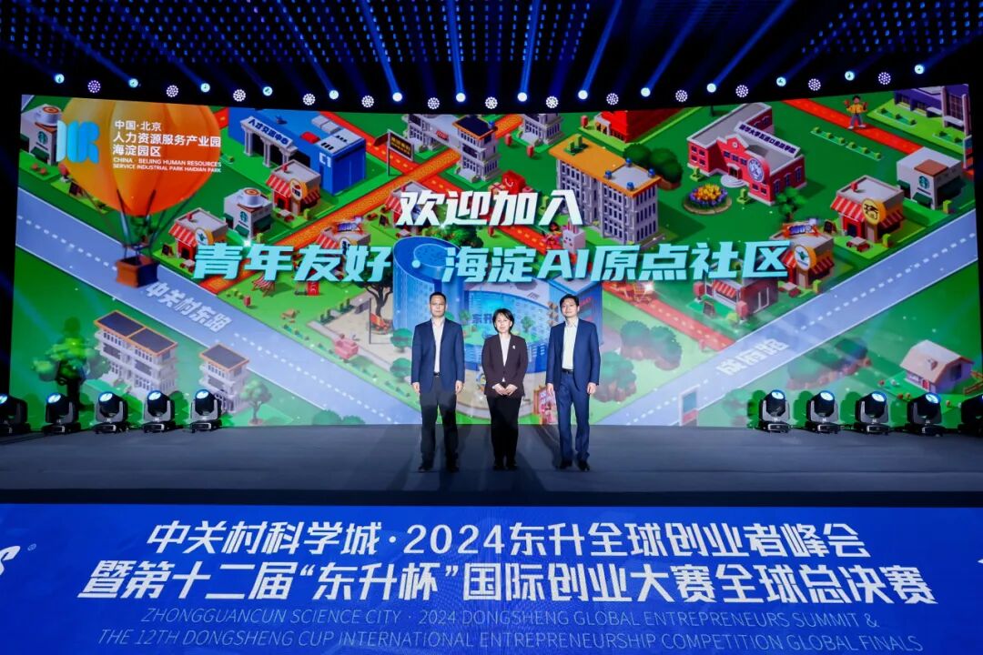 活动现场进行青年友好·海淀AI原点社区原住民计划发布,海淀区人力资源和社会保障局局长刘涵,中关村高科技产业促进中心主任岳德钰,东升镇党委副书记、镇长辛果上台,共同开启海淀AI原点社区原住民计划,助力青年群体就业创业,打造青年友好型城市。