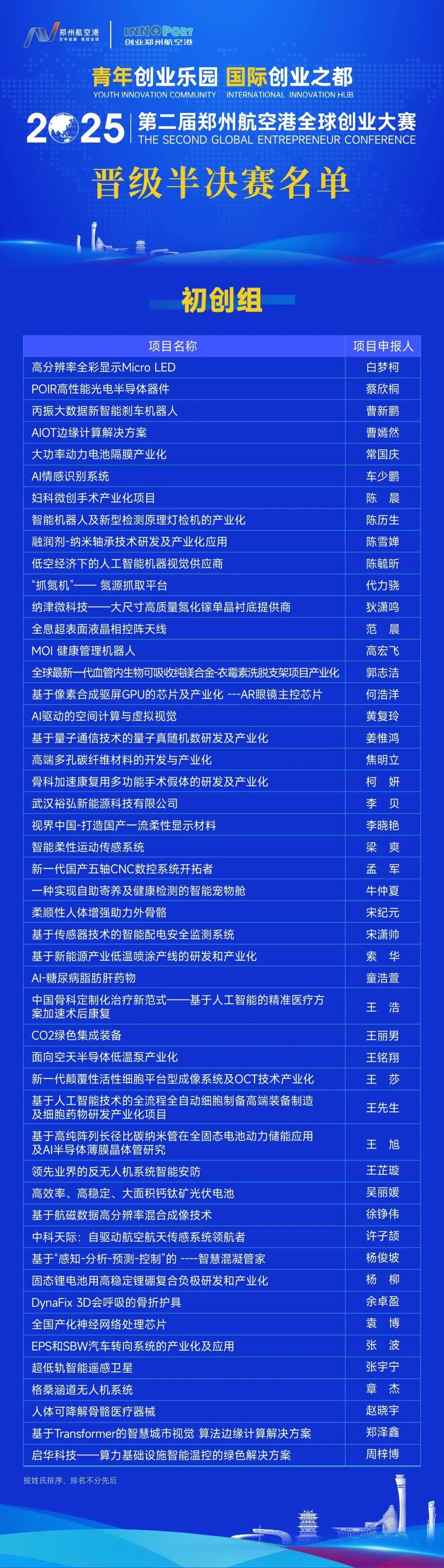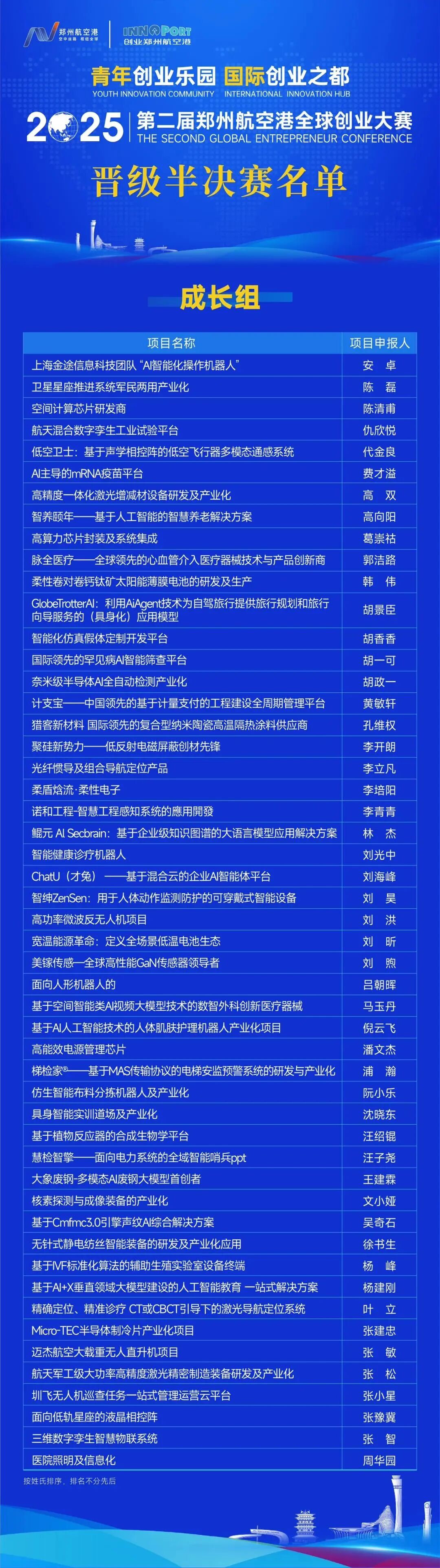 经过线上评审,INNOPORT第二届郑州航空港全球创业大赛共计100个项目晋级半决赛,其中成长组50个,初创组50个。现将结果予以公布。