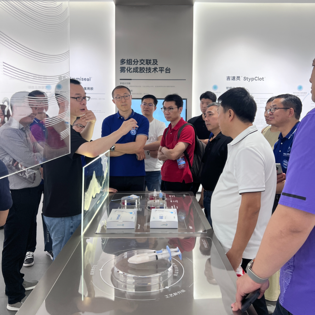 在广州迈普再生医学科技股份有限公司,讲解人员举起一片轻薄的多孔膜:“这是全球率先实现生物增材制造技术在软组织修复领域的产业化的产品——人工硬脑膜‘睿膜®’,已在100多个国家和地区国临床应用,解决了现有脑膜产品修复能力不足、柔软度较低、组织贴合性差及生物相容性差等共性、关键性技术难题。凭借领先的技术工艺和优异的产品性能,睿膜®入选中国科技部《创新医疗器械产品目录(2018)》,为仅有的9项“国际原创”产品之一。”随后,讲解人员还带领着企业家学员通过展厅的交互设备,体验了微纤维网成型技术平台织就的微观视界。方寸之间,通过虚实结合的方式,迈普医学为大家娓娓道来了一场医疗革命。
