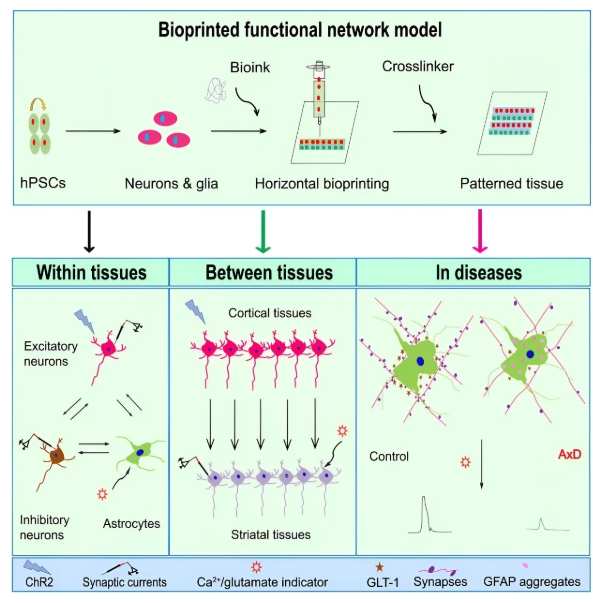 研究人员采用了水平叠层方案,将从诱导多能干细胞中培养出来的脑细胞置于柔软的“生物墨水”凝胶中,最终培育出神经元。打印的细胞通过介质在每个打印层内部和层之间产生连接,形成与人类大脑相当的网络。