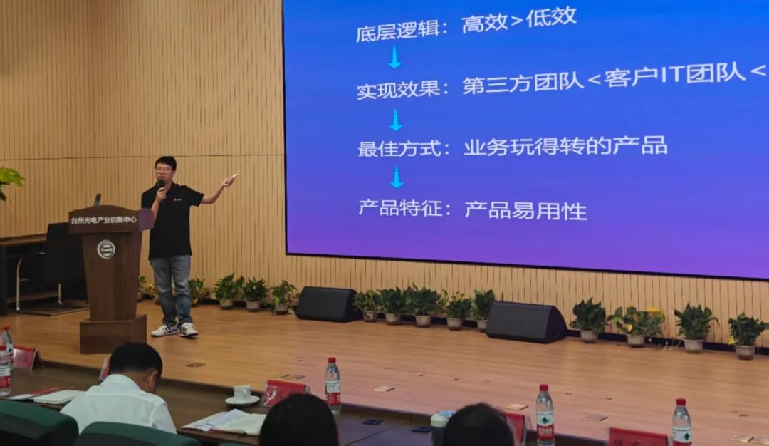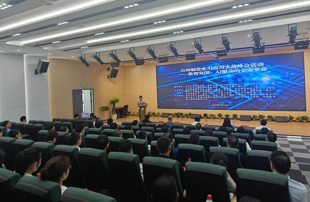 5月23日下午,由台州北大科技园联合浙江伍一技术股份有限公司台州分公司、杭州分叉智能科技有限公司、北京飞书科技有限公司、毕博智联(浙江)科技有限公司、台州(椒江)科技大市场共同主办的“台州高新区制造业AI应用实战峰会活动——数智突围:AI驱动的企业革命”在台州光电产业创新中心成功举办。本次活动旨在发挥平台优势,聚焦中小制造业企业数字化转型需求,通过 AI 赋能,助力企业形成数据驱动的决策体系和柔性化生产能力,为区域经济实现质量变革、效率变革、动力变革注入可持续的智能创新动能,推动台州高新区在制造业数字化转型领域的发展。活动当天,来自飞书、影刀、毕博等国内AI相关领域的头部企业专家齐聚现场。本次活动吸引了台州当地近百名企业负责人参加。