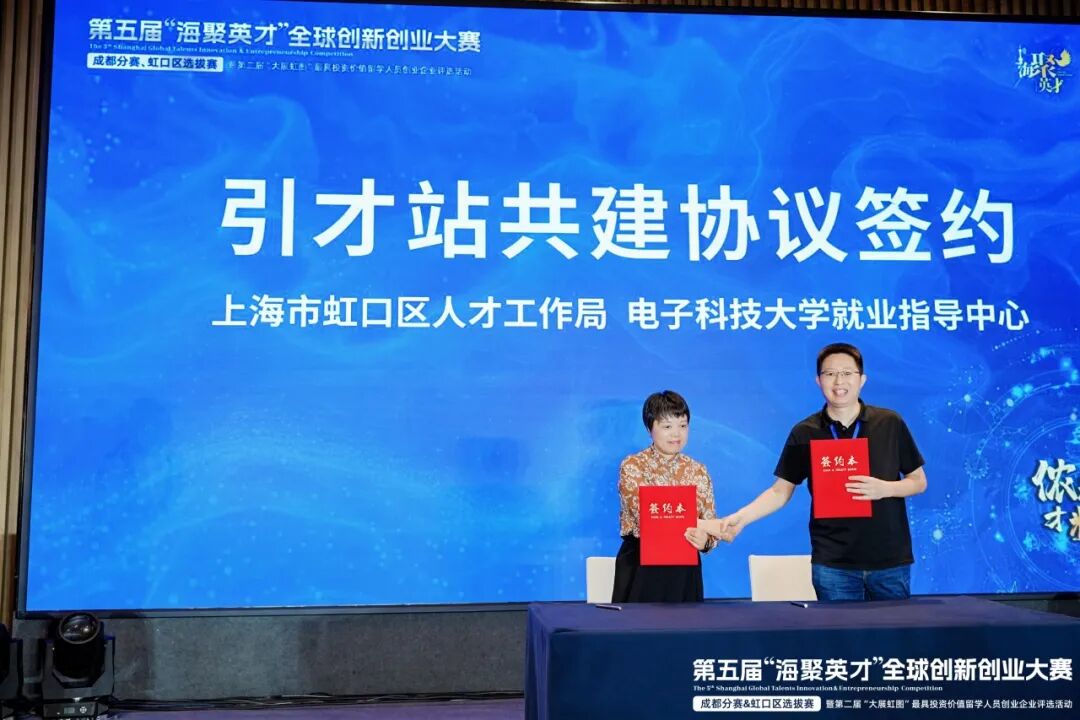 大赛启动仪式上,上海归心谷创客空间管理有限公司、成都技转创新连线科技集团有限公司、新业坊·Lab中科技物联创中心、翰仕人力资源(上海)有限公司四家企业受聘为虹口引才合作人。虹口区人才工作局与电子科技大学就业指导中心签约合作协议,共建虹口区引才工作站,将在校园招聘、实习实践、人才培养、产学研转化等方面形成长效合作机制,为虹口加快建成产城相融的新标杆输送优秀人才、注入创新活力。上海市海聚英才发展促进会成都工作站正式揭牌,旨在进一步发挥以赛引才、以赛聚才的辐射作用,搭建东西部人才流动的“双向桥梁”。