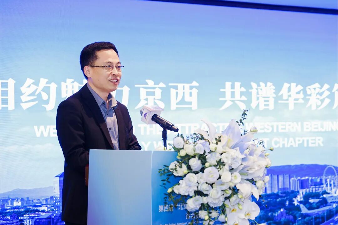 北京市石景山区投资促进服务中心党组书记王传东做投资环境推介,全面介绍了区域产业载体和政策支持。