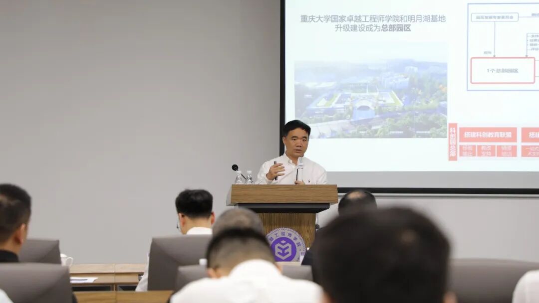 近日,明月湖科创园建设工作研讨会在重庆大学国家卓越工程师学院举行。市科技局党委委员、副局长蒲骥出席会议并讲话。市科技局、市教委相关处室负责人、全市环大学创新创业生态圈承建高校相关负责人等参加会议。