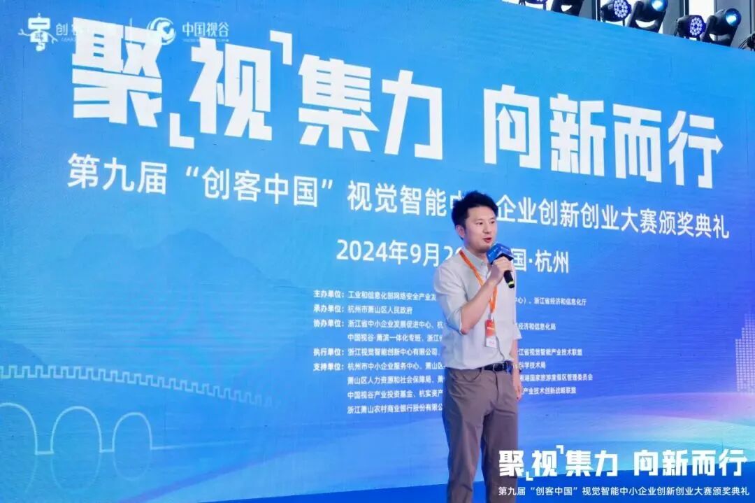 大赛颁奖典礼现场,“中小企业是我国经济发展的生力军、促进就业的主渠道、产业链供应链稳定的重要基础。浙江拥有较为完整的视觉智能产业体系,集聚了一批产业链龙头和骨干企业,探索出一条‘视觉智能+’的集群化发展模式。”王俊峰总工程师在致辞中表示,“‘创客中国’连续两年设立视觉智能专题赛,连续在产业基础好、企业集聚多、创新能力强、应用场景全的杭州市萧山区开展竞技,希望以此为全国视觉智能企业搭建交流展示、协同创新、产融对接的广阔平台,挖掘和培育一批视觉智能领域的优秀企业和团队,精准服务优秀项目成果的转化落地,培育一批视觉智能产业链‘专精特新’企业,助力杭州强化‘中国视谷’产业名片,推动培育视觉智能领域世界级产业集群。”