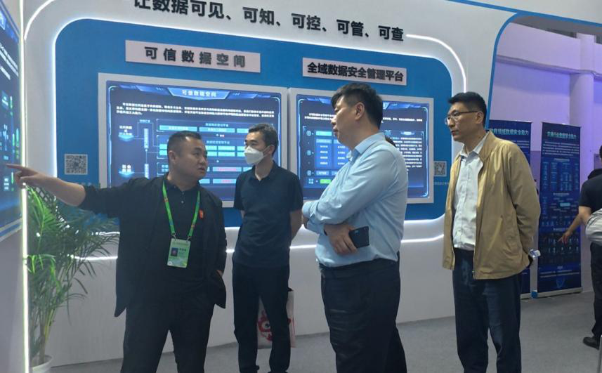 河南省数据局党组书记、局长郑华卿专程莅临展位,听取“可信数据空间”方案汇报。该方案通过隐私计算、区块链技术实现数据“可用不可见、可控可计量”,云智信安表示将继续深耕核心技术,助力河南探索数据要素市场化路径。