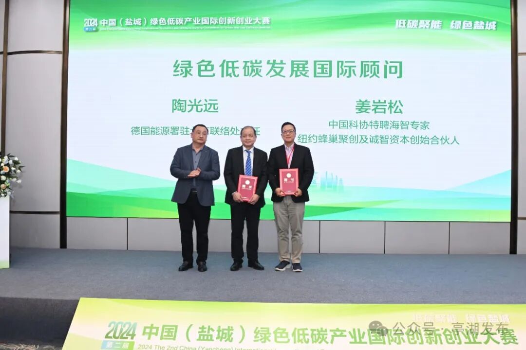 大赛现场,公布了决赛结果,并分别为获奖项目颁奖;颁发了绿色低碳发展国际顾问聘书;举行了项目签约仪式;推介了盐城环保高新区投资环境,发布了技术成果和需求。赛后,陶光远、柳云虎等环保领域专家分别作了题为《如何实现碳中和?——德国的实践及其对盐城的启示》《面向SDG的绿色发展国际合作与实践》的专题讲座。