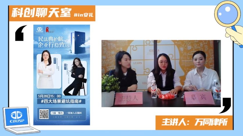 5月28日,为进一步普及《民法典》知识,提升园区法律意识,我园联合重庆万同律师事务所开展“民法典护航 企业行稳致远”线上直播普法活动。