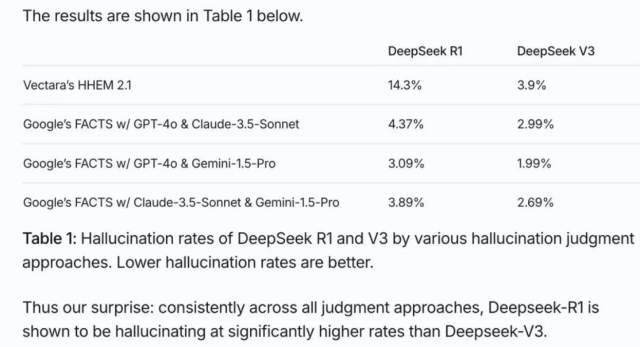 随着DeepSeek的爆火,不少网友发现,当使用R1模式时,大模型总是在“一本正经地胡说八道”。这并非错觉,在Vectara HHEM人工智能幻觉测试中,DeepSeek-R1显示出14.3%的幻觉率。