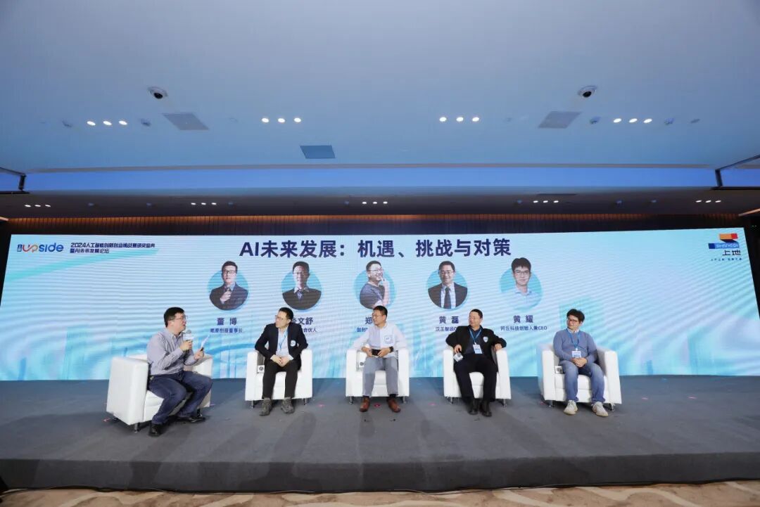 圆桌对话环节更是精彩纷呈,氪星创服董事长董博主持,与梅花创投合伙人谈文舒、伽利略资本合伙人郑譞、汉王智远CEO黄磊、阿丘科技创始人黄耀等围绕“AI未来发展:机遇、挑战与对策”的主题进行了深入交流,共同为上地如何在海淀打造“人工智能全景赋能第一城”中发挥优势建言献策。