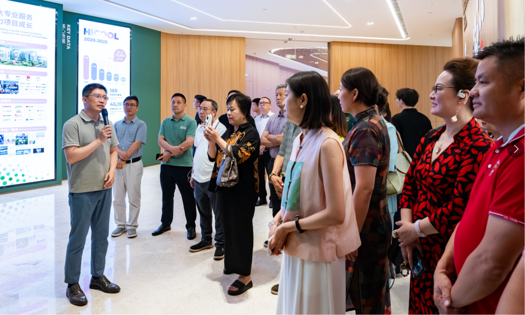 7月8日,中侨国际人才智库组织近50家企业组成代表团,赴HICOOL产业园二期开展参观考察活动,旨在深化资源对接,携手HICOOL共同为在北京的全球创业者打造更优质的创业环境与服务生态。