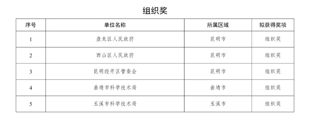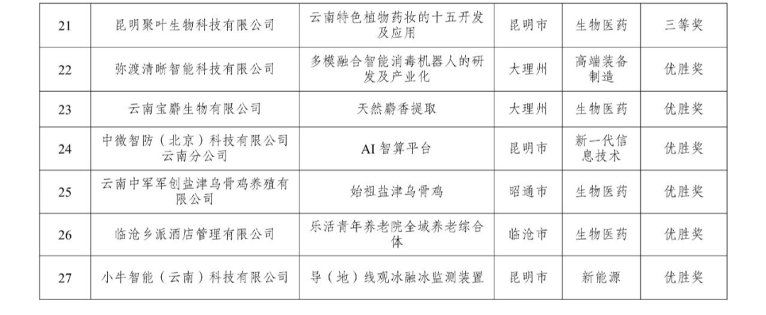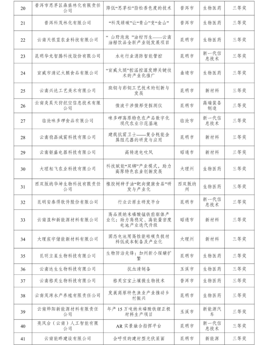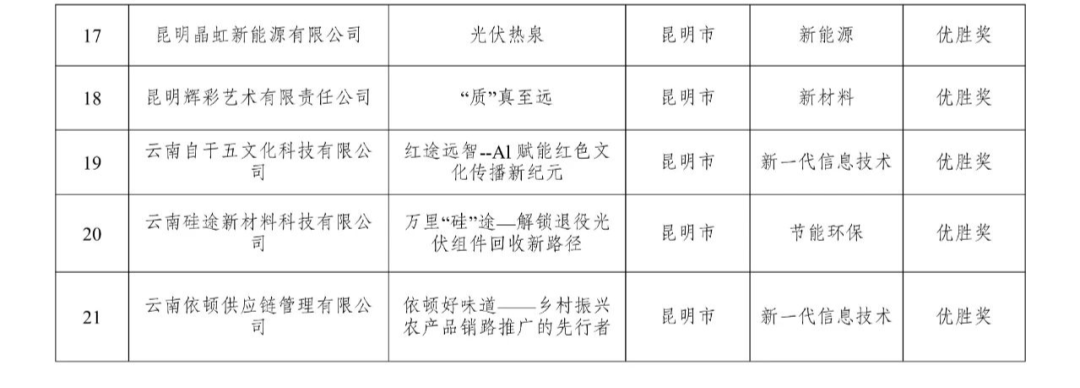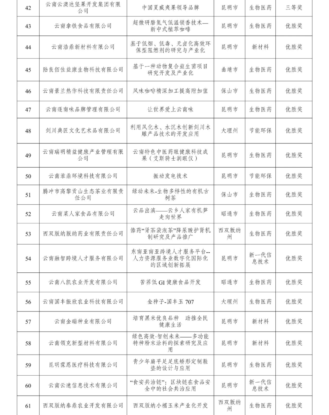 云南省科技厅共青团云南省委 云南省教育厅关于“彩云汇”创新创业大赛暨2024年云南省创新创业大赛拟获奖名单的公示
