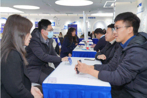 虽然寒冬凛冽,但现场对接的气氛热烈。在对接洽谈环节,除十个市、区外,还集聚了多家投融资机构、招商载体代表,同时设立了政策咨询专区,提供人才政策、住房、教育等方面的详细解答。