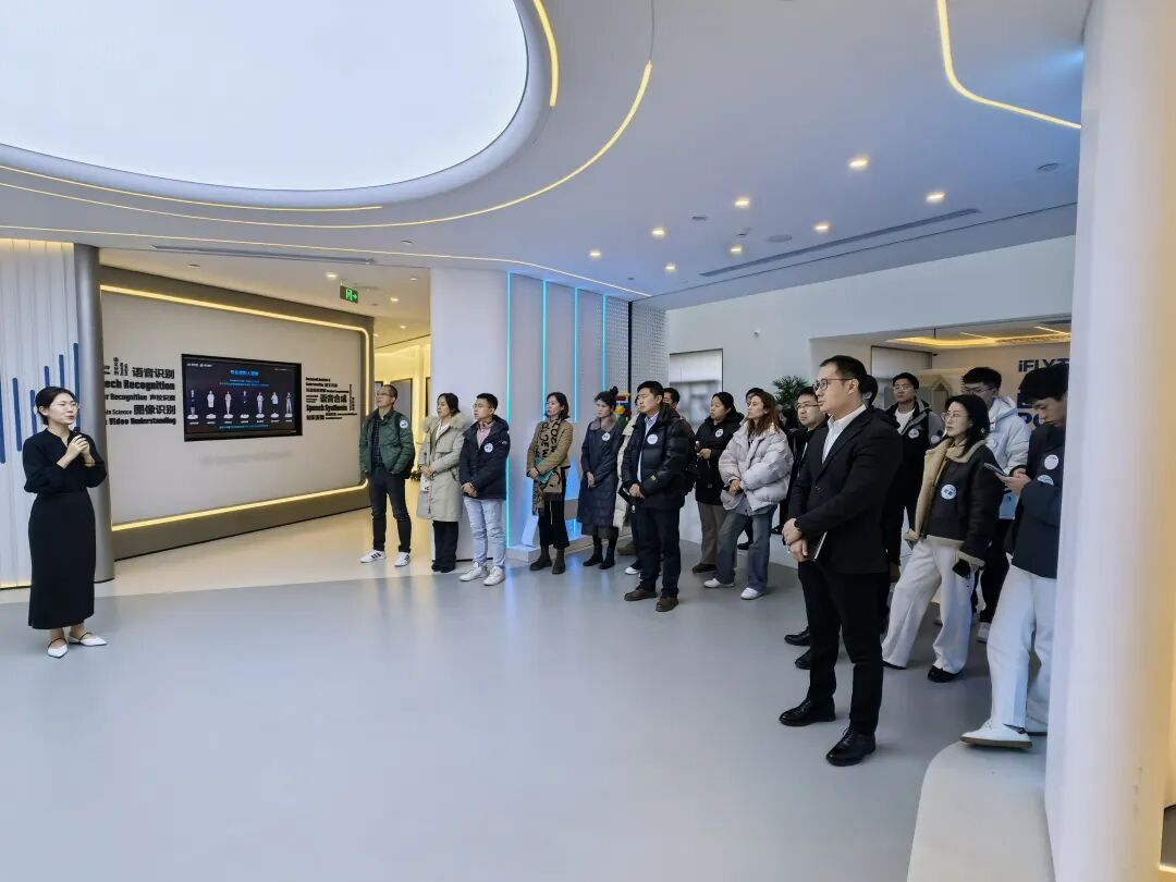 随后,访学团一行前往科大讯飞北京总部进行参观交流。在科大讯飞人工智能体验馆,项目代表亲身体验了人工智能技术在办公、教育、医疗等领域的技术创新及行业应用,了解到讯飞星火大模型、同声传译、虚拟主播等AI应用成果。