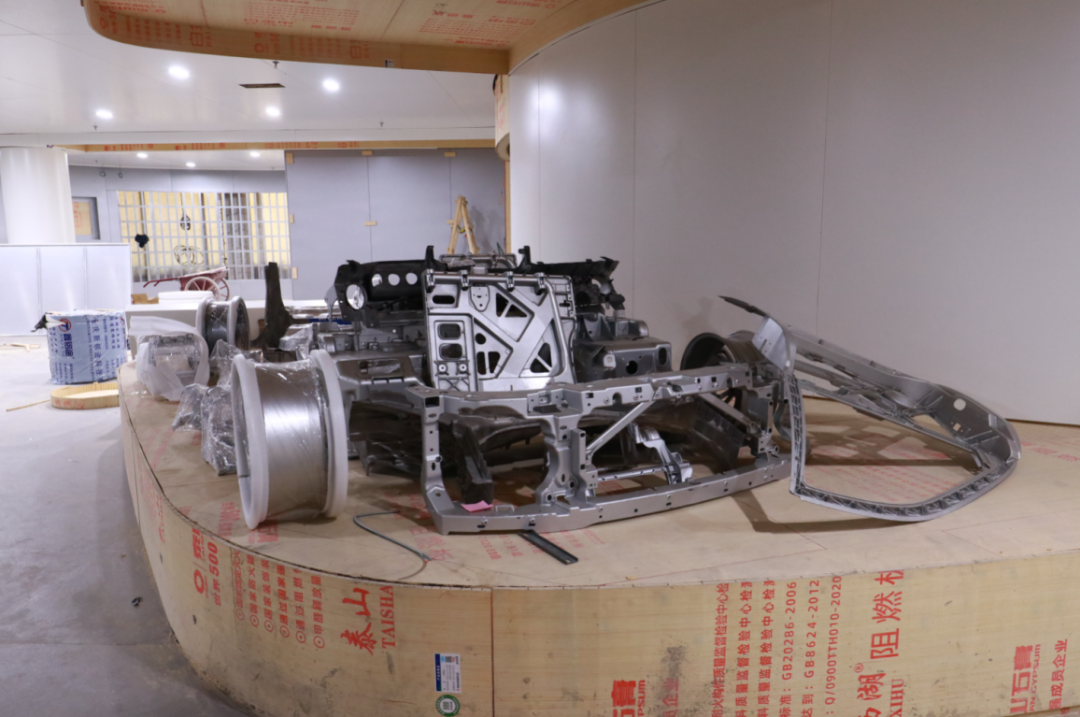 近日,记者在明月湖产学研合作基地23#楼一楼看到,装修工程已进入水电施工阶段,开槽、预埋、固定、布线,3名电工分工合作,正在进行施工。一楼大厅内各功能性平台已具雏形,超大一体压铸镁合金车身被摆在了大厅右侧“展台”上,大厅外已挂上“智能材料研究院”“交叉前沿材料研究院”两块牌子。