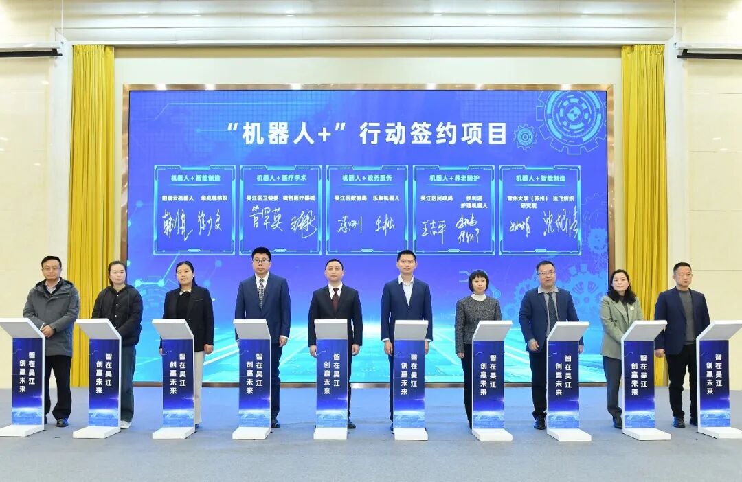 现场,“机器人+”行动项目、智能机器人产业项目等22个重大项目签约落地,涉及政务服务、养老陪护、医疗手术、智能制造、物流搬运等多个领域,为吴江智能机器人产业发展注入强劲动能。