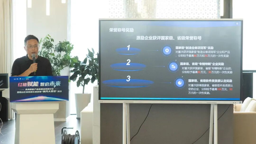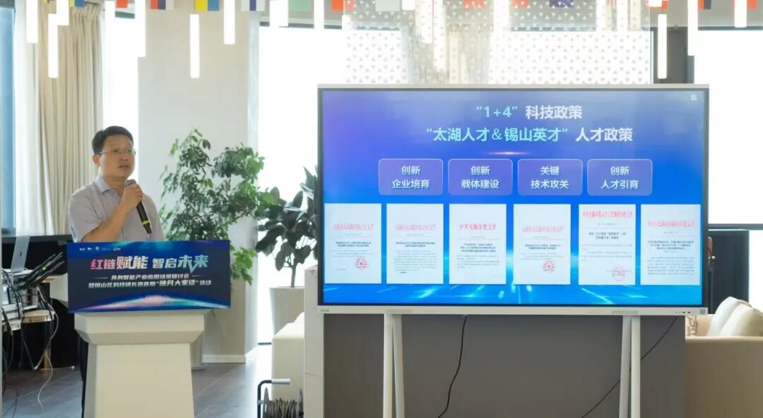 现场,锡山区科学技术局、区工业和信息化局相关负责同志分别对科技人才政策、人工智能/具身机器人产业政策进行解读介绍。