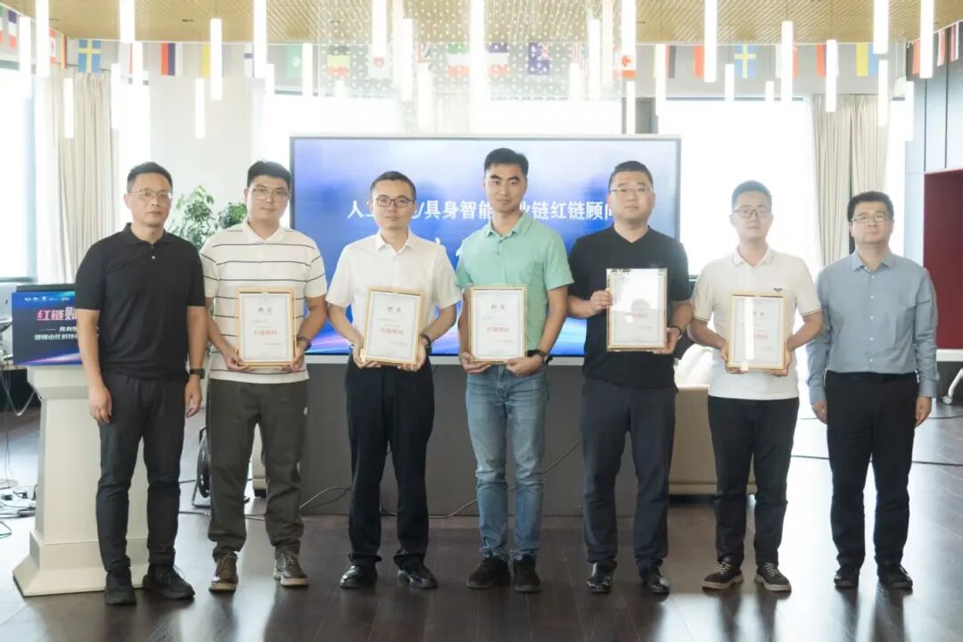 锡山区委人才办、区工业和信息化局相关负责同志为张圣林、董元旦、钱琨、阮强、顾龙云颁发“人工智能产业链红链顾问”聘书。