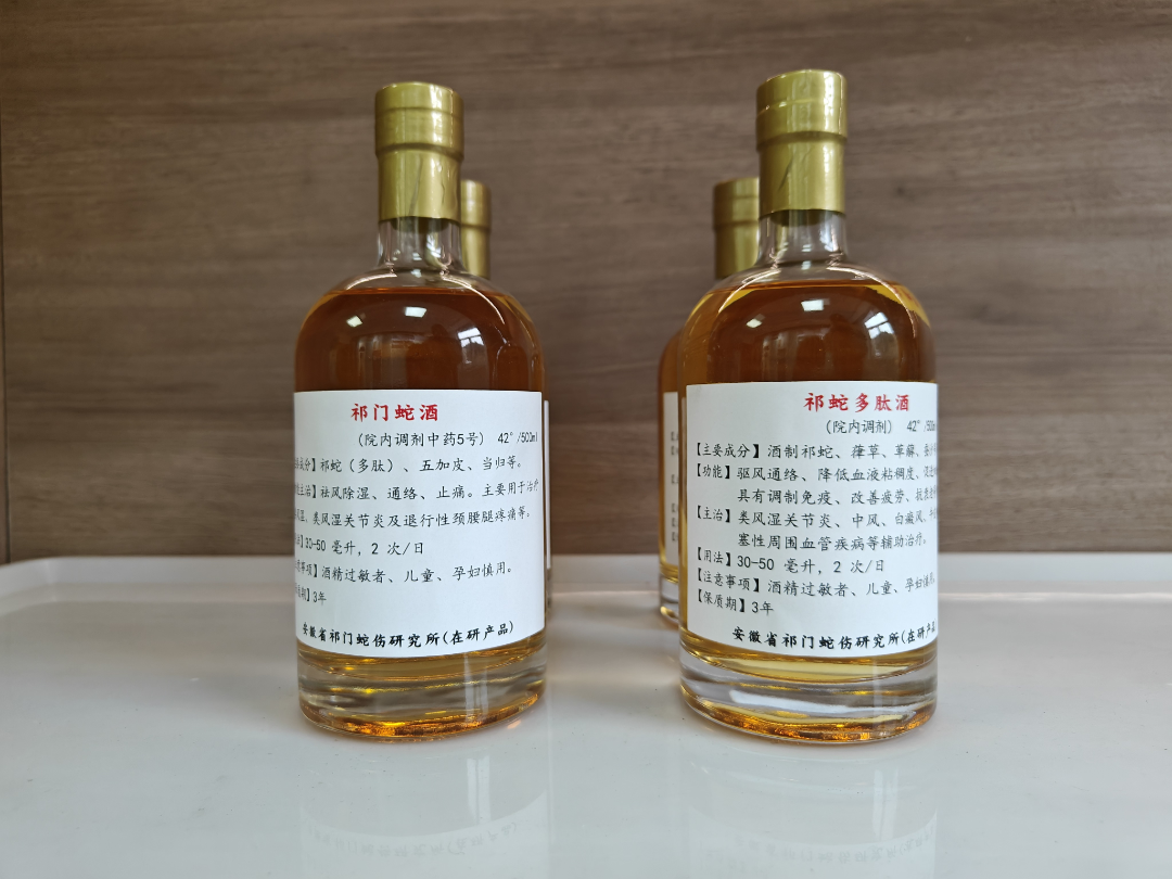 祁蛇酒系列在传承古方基础上融入现代多项专利生物技术,增强道地药材药效,改善口感,多年临床实践证明祛风除湿、增强免疫疗效显著,更能高效抗痛风、抗痛,受到消费者一致好评,公司致力于建设综合性祁门道地药材产业链,涵盖关键野生道地药材养殖培育业、祁蛇医药产品加工业、旅游业等多个领域。通过技术创新、资源整合和产业链垂直整合,建立祁蛇酒产品安全保障体系和可溯源体系,保障产业链健康持续发展。