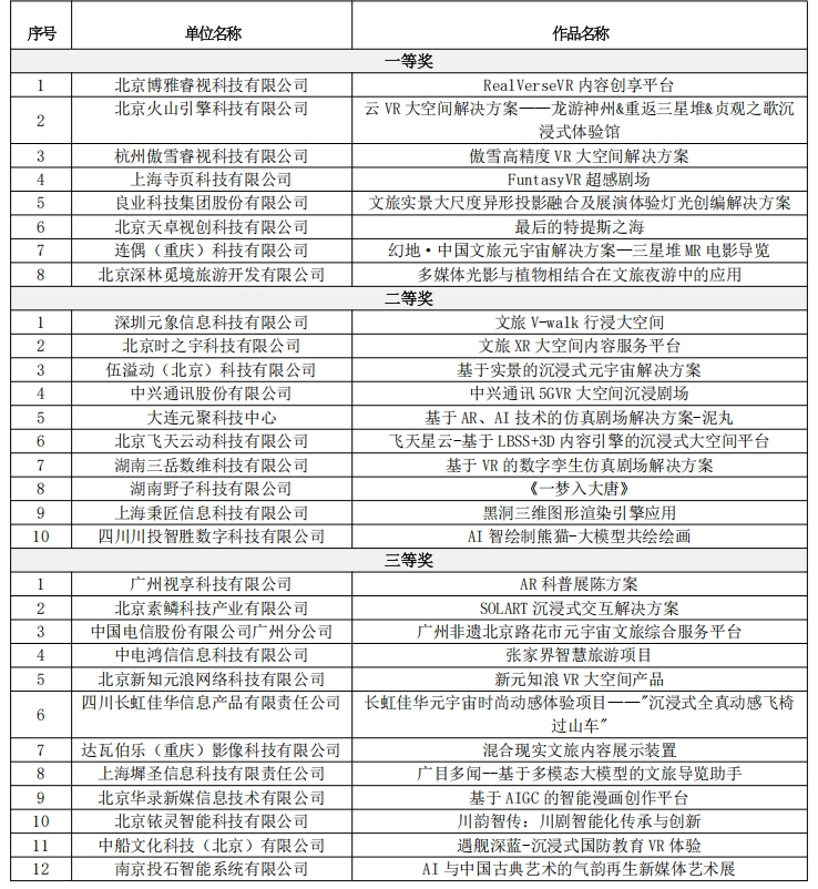 2024明月湖·π国际创新创业大赛暨第二届“兴智杯”全国人工智能创新应用大赛“AI+文旅”主题赛获奖名单