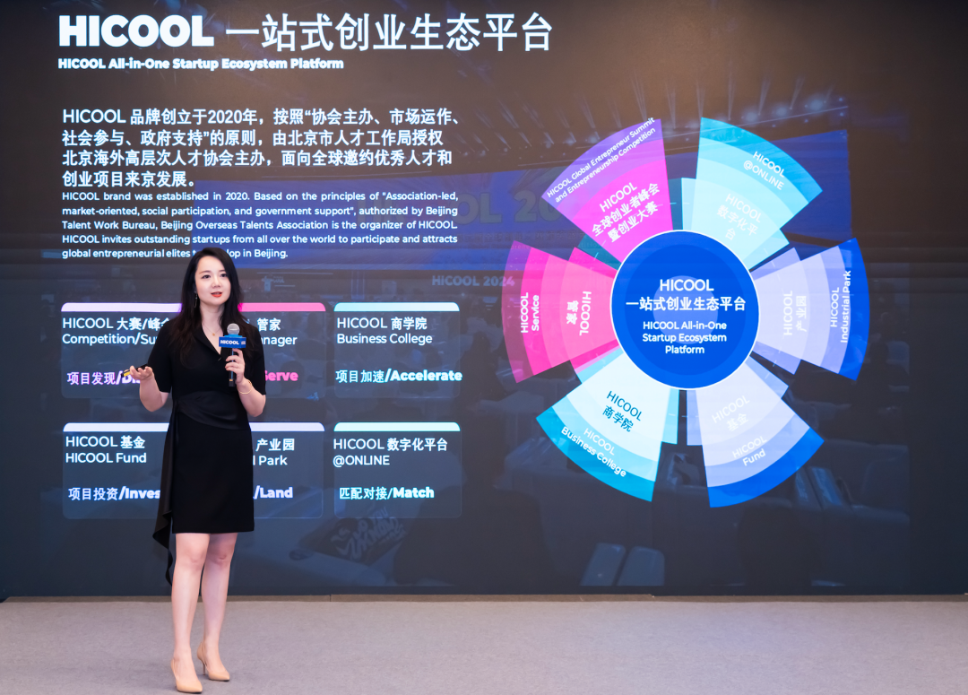 北京海外高层次人才协会副理事长、秘书长武沂分享了HICOOL六年来持续构建的“大赛/峰会+管家+商学院+基金+产业园+线上数字系统”六位一体的生态闭环,全力服务全球创业者落地北京。六年间,累计获奖项目融资总额突破446亿元,成功孵化1家上市公司、16家独角兽、157家专精特新企业。