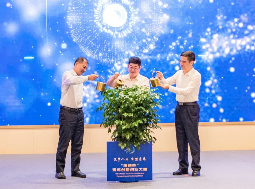 中国海峡人才市场党组书记、董事长游诚志,福州市政府党组成员、福州新区党工委副书记、管委会主任兰文出席启动仪式并致辞。参会领导手持水壶,浇灌象征不断成长与进步的“树苗”,这一富有创意的启动方式,正式拉开了“海峡杯”青年创新创业大赛初赛的序幕。