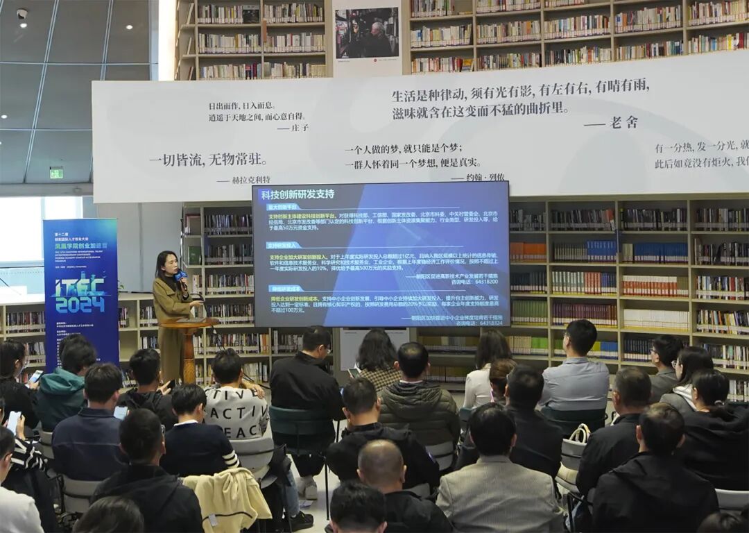 朝阳区发展改革委产业促进科科长李明慧对朝阳区“1+7”产业政策体系进行了详细解读,梳理产业领域各类优惠政策和优质资源;中关村科技园区朝阳园管委会(区科信局)发展规划处副处长赵培详细介绍了朝阳区科技创新情况及科技产业政策,帮助参赛项目了解朝阳创业环境和科创政策支持;朝阳区人才工作局交流合作科科长周原介绍了朝阳区人才工作概况,详细阐述了朝阳国际人才创业大会(ITEC)、“凤凰计划”人才认定政策及“1+8”高层次人才服务体系、凤凰学院等一系列区内人才品牌工作。