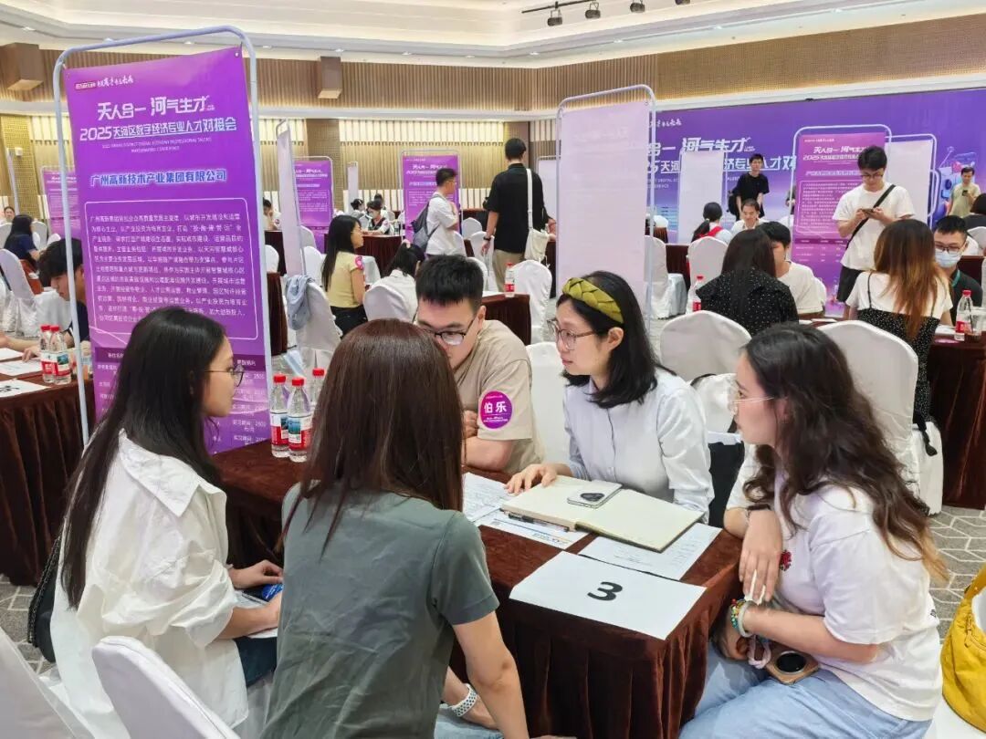 活动现场汇集26家天河优企,提供112个高质量岗位,既有AI领军人才、研发工程师等“硬核”技术岗,也有管培生、新媒体运营等热门领域岗位,需求覆盖从专科到博士全学历层次,最高年薪达50万元,吸引近500名人才参与,其中包括来自华南理工大学、华南师范大学、华南农业大学、暨南大学的高校学子及经验丰富的社会技术人才。截至目前,企业已累计收到简历超400份次,通过初试人数超80人。