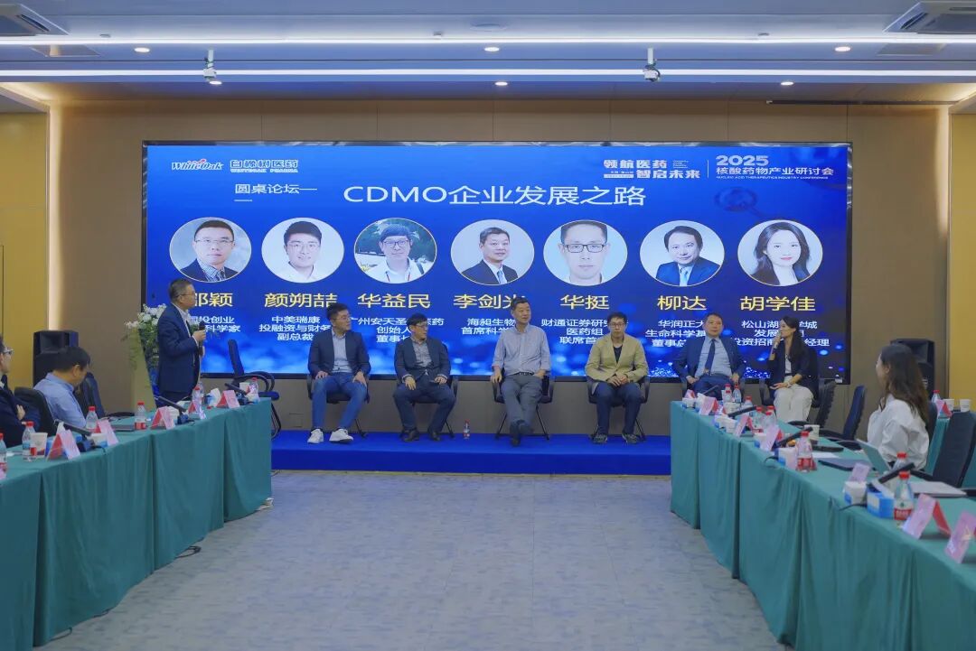 开业仪式后,海昶生物联合科学城集团举办“2025核酸药物产业研讨会”,汇聚来自惠正奇医药、广东医科大学、美纳智信、安天圣施医药、财通证券研究所、达晨财智、华润正大等机构的8位权威专家,围绕核酸药物研发、AI赋能、CDMO发展路径等热点话题展开深入分享和交流。