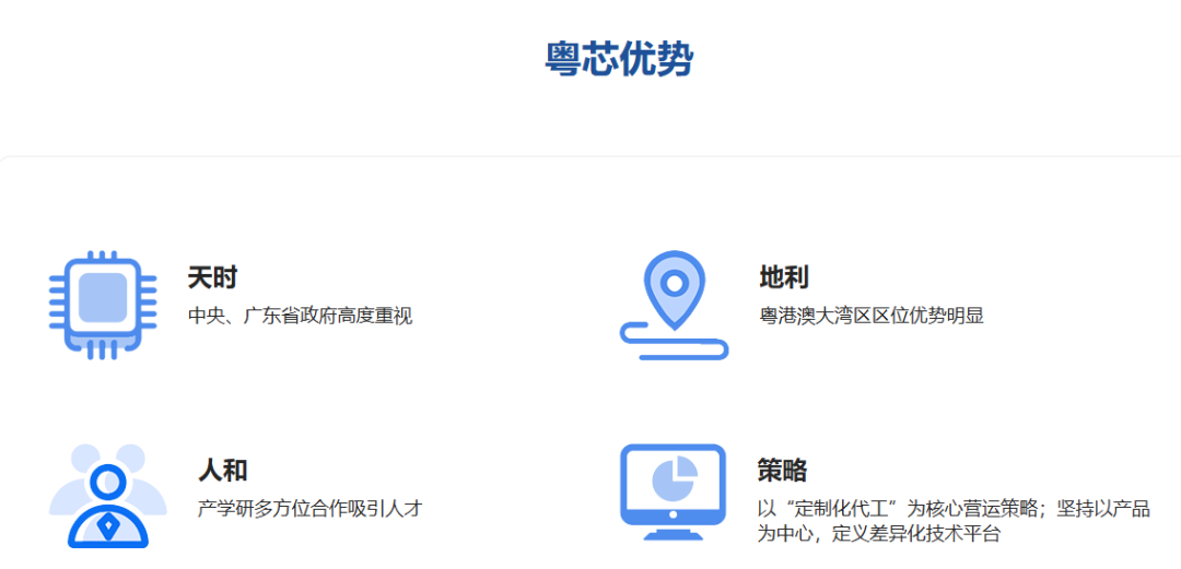粤芯半导体表示,其具有天时地利人和及策略等四大优势。而在多位业内人士看来,以广州为代表的珠三角,是中国电子整机产业最为发达的地区。但长期以来,珠三角本地不具备芯片制造能力,芯片设计公司往往要远赴长三角或海外进行芯片制造。粤芯半导体的出现,补齐了当地产业链的空白,且与当地整机制造企业如广汽等形成了产业闭环,具有显著的协同效应,有望助推珠三角电子产业发展更上一层楼。