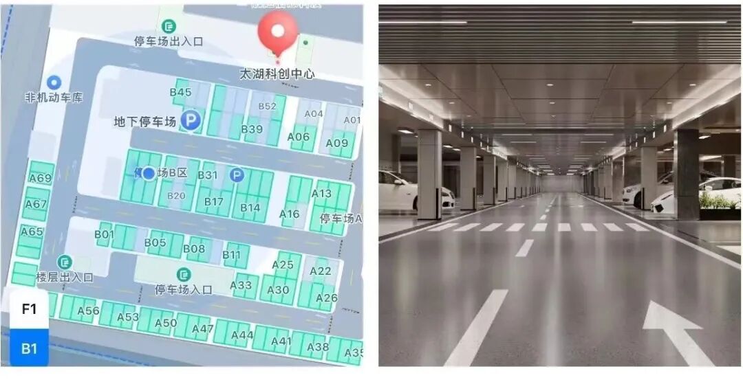【停车规划】项目拥有停车位300余个,可通过百度地图搜索“太湖科创中心地下停车场”查看实时车位空闲状态、并可预约车位实现车位级导航、反向寻车等功能。