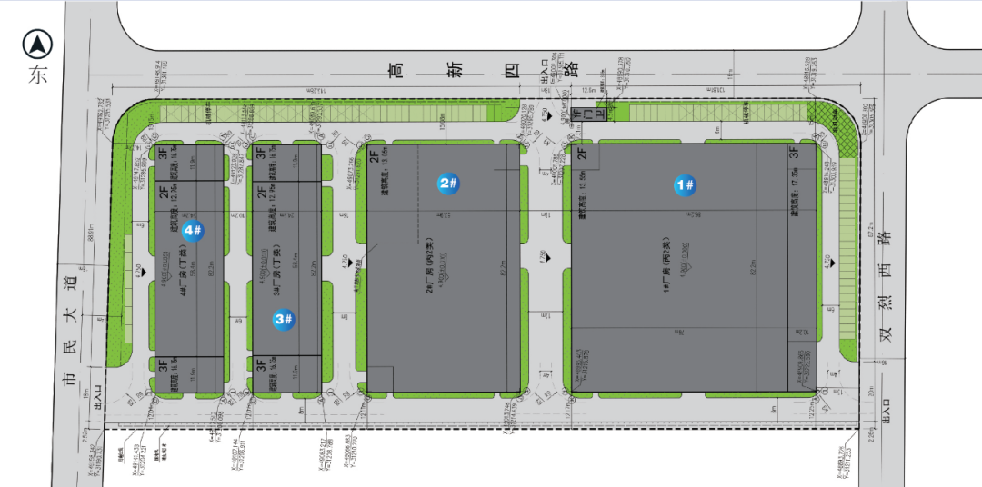 3#/4#厂房:单栋面积4560㎡,结构灵活,柱距12m×8.2m,适用中型设备布局,用电容量650kVA。