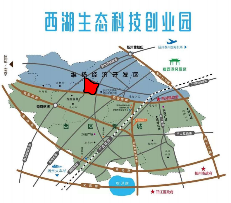 西湖生态科技创业园(简称“西湖科创园”)由扬州市邗江区人民政府西湖街道办事处主导建设,项目始建于2014年10月,由街道属企业扬州西锦经营管理有限公司(亦称“扬州西锦投资有限公司”)出资打造。园区总占地面积约120-135亩,总投资4.2亿元,总建筑面积16万平方米,分四期建设,目前已全部建成并投入使用。截至文档统计时,已入驻企业60余家,其中创业空间企业30家,形成了良好的产业集聚效应。园区地理位置优越,北接维扬经济开发区,南临西区新城,紧邻启扬高速,距离蜀冈枢纽、润扬快速路直线距离仅1公里,交通十分便利,10分钟可达扬州北高速入口,15分钟可达扬州火车站及汽车西站,40分钟可达扬泰机场。园区已荣获“国家级众创空间”、“省级科技企业孵化器”、“省级小微企业创新创业示范基地”等多项荣誉,是区域创新创业的重要载体。2024年,西湖街道完成地区生产总值73.39亿元,一般公共预算收入1.22亿元,为园区发展提供了坚实的区域经济支撑。