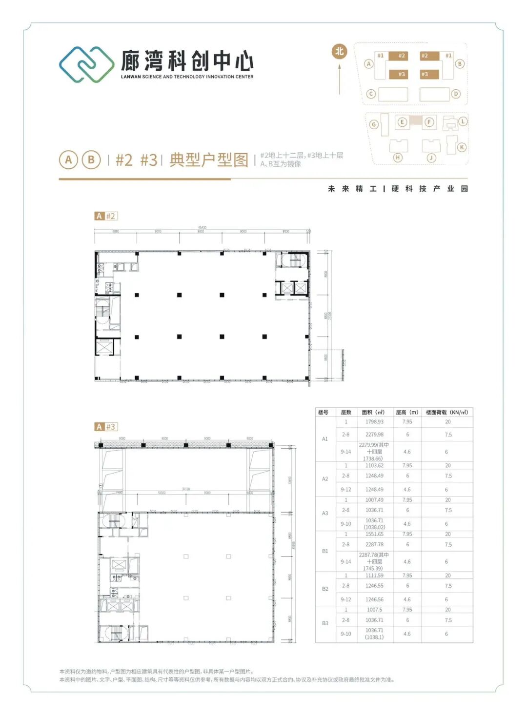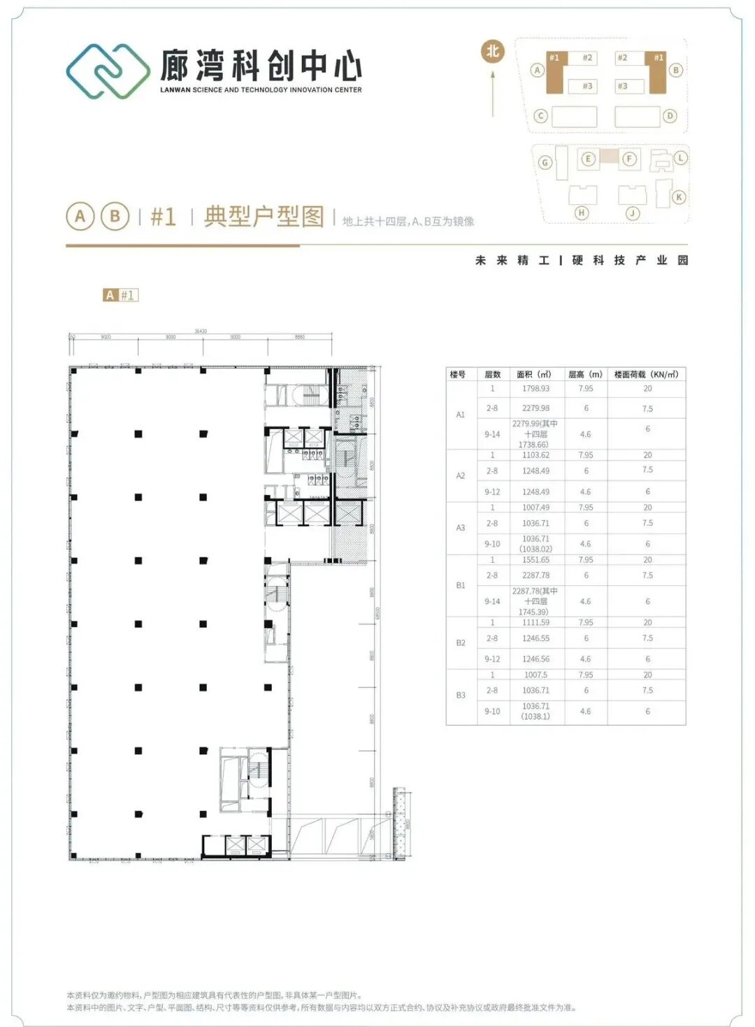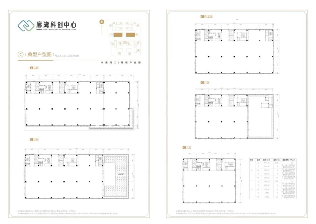 空间参数:首层层高可达7.95米,2-8层层高多为6米,标准层4.5米,承重荷载高(首层2吨/㎡,标准层600-750kg/㎡),土地性质为工业用地,消防等级为丙类,非常适合研发、中试及轻型生产。